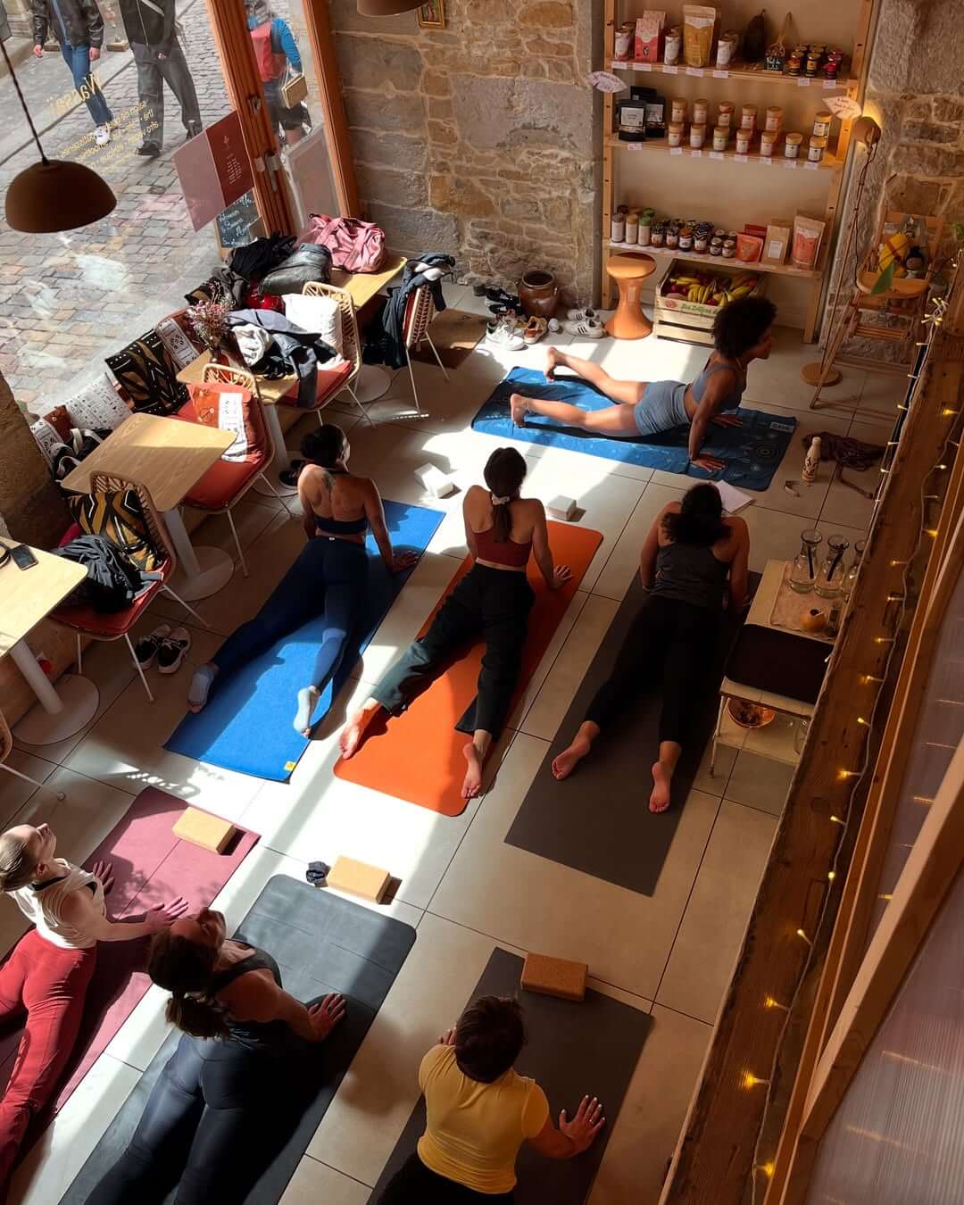 Cours de Yoga Vinyasa au Wassaï, un coffee shop afro vegan qui valorise les saveurs et les cultures tropicales et afro-descendantes